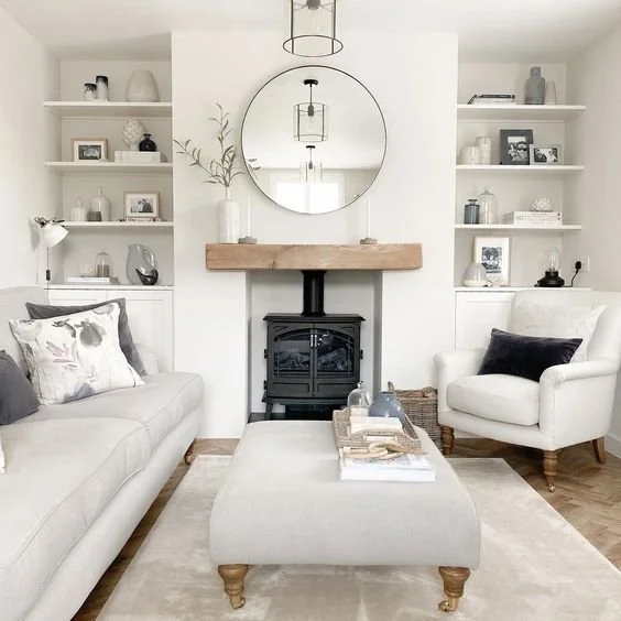 New build living rooms generally lack a focal point such as a fireplace, so why not ask a builder to create one for you? Opt for built-in units either side, to provide balance and symmetry, as well as plenty of space to display accessories, books and artwork.