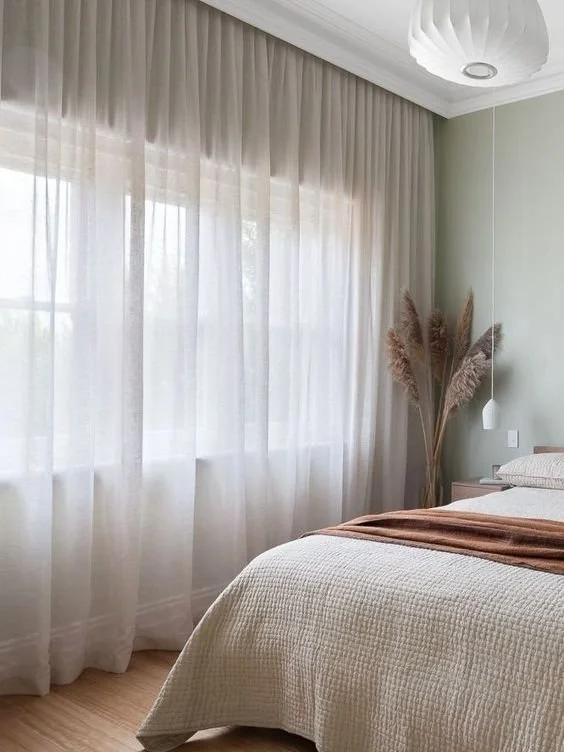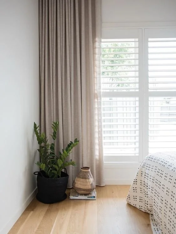 Layers curtains and blinds or shutters to add texture and depth to a window. Hang curtains as high to the ceiling as possible to create the illusion of height, whilst also hanging them as far off the window as space will allow to give the illusion of wider windows too.