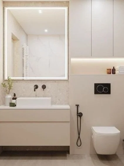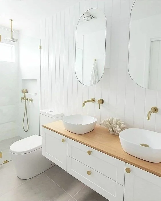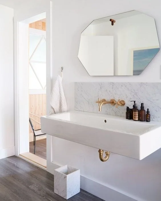 A large format mirror is an essential element of a small bathroom design, as not only will it bounce light around the room, it will also create the illusion of more space. Make a dramatic statement with a large wall-to-wall mirror, or go for a chic large round mirror as a statement piece.