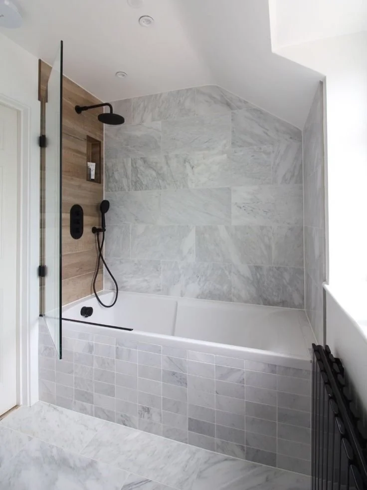 Use existing stud walls as a foundation for your layout, as they can be helpful for creating shower niches. If you’re knocking down walls and building new ones, take advantage of the opportunity to hide plumbing within the walls. This will allow you to install wall-mounted basin or bath taps, giving your bathroom a sleek, modern look while keeping the space clean and clutter-free.