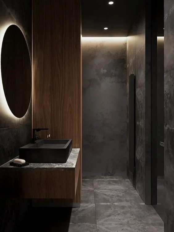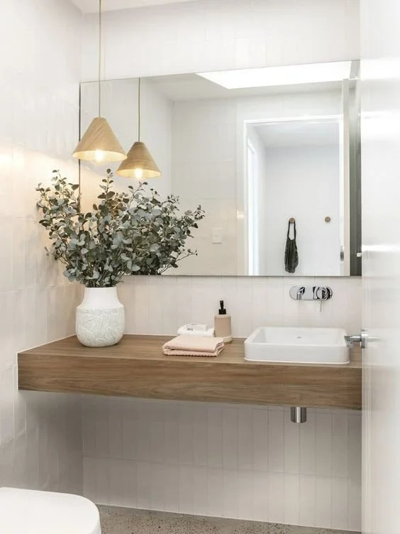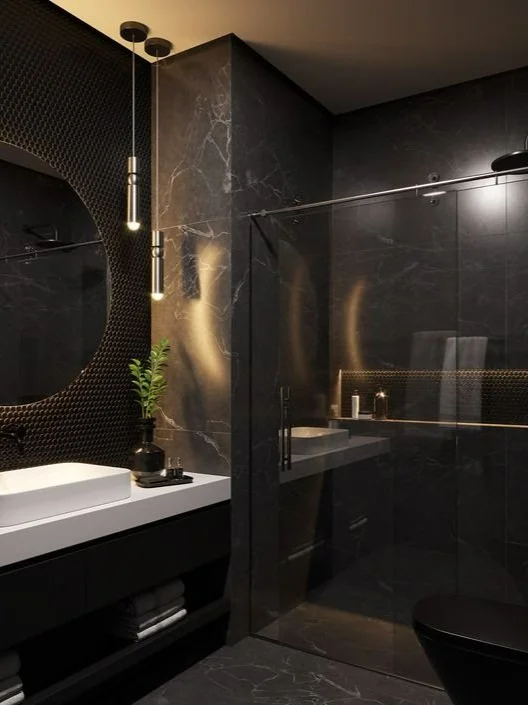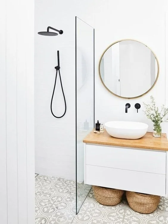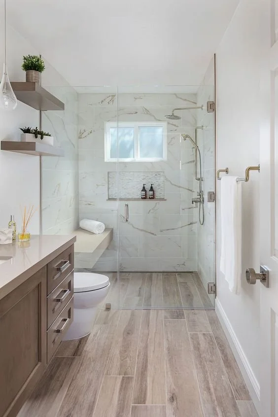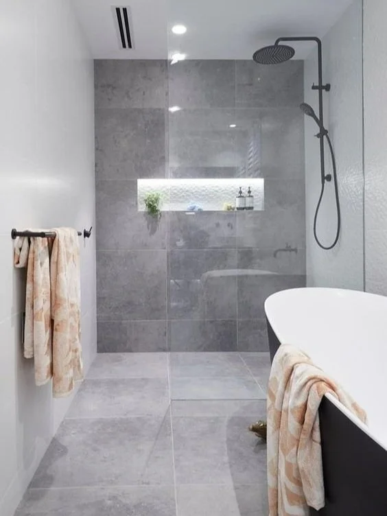 1. Use large format tiles on the floor and wall