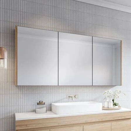 Keeping surfaces clean and free from clutter will ensure a small space always looks streamlined. Wall mounted vanity units, such as this one from Drench, or mirrored cabinets are a good option in a small bathroom. If you have the space, you can always recess a cabinet in a wall.