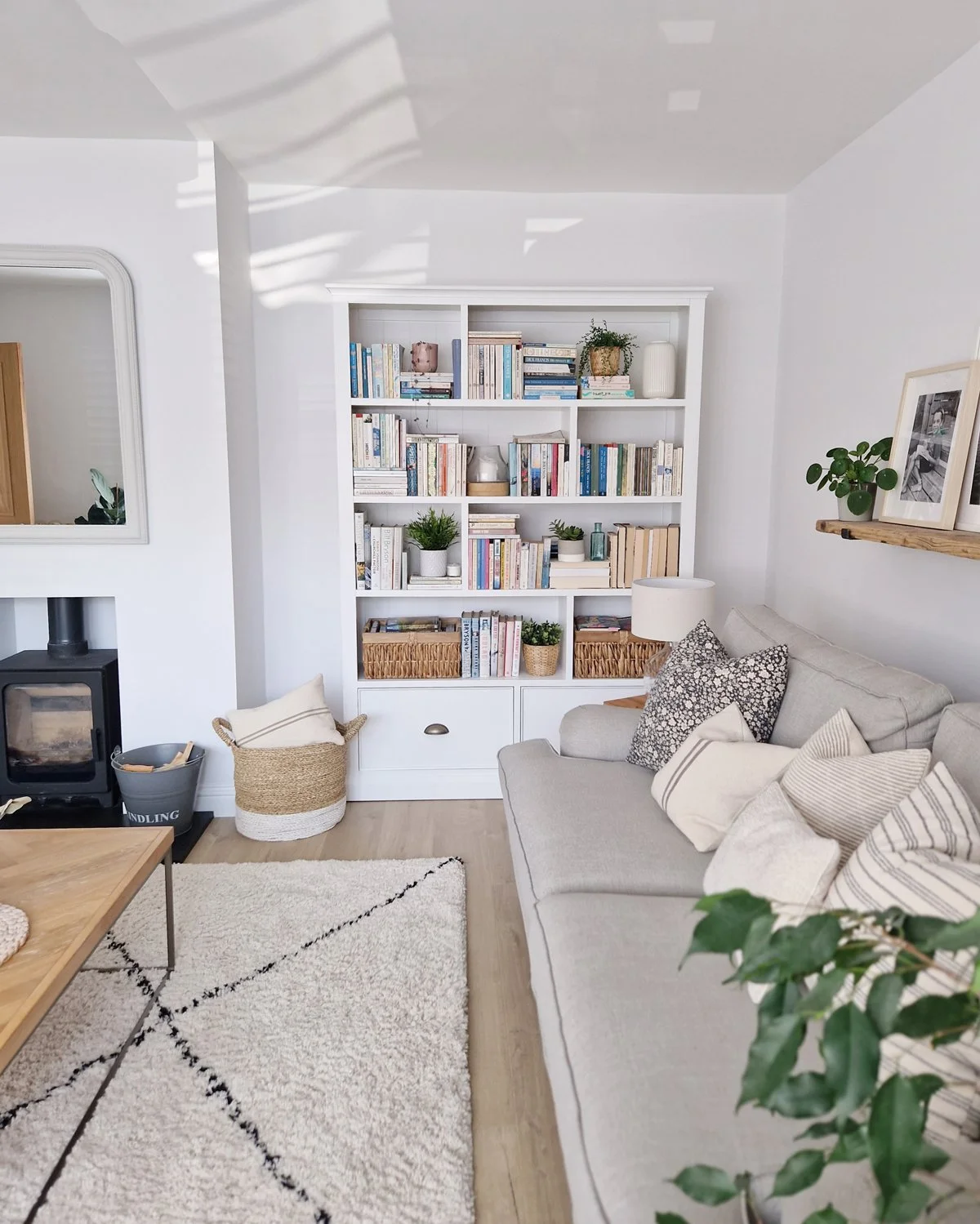 If your living room functions as a playroom too, think about sofas and footstools with hidden storage for toys. Bookcases or deep shelves are also great for storing baskets of toys, and likewise shelving units are perfect for adding interest with some carefully styled accessories. If you need to use the living area as a home office, make sure your desk has drawers to hide away any clutter, to help keep the living room a relaxing space.