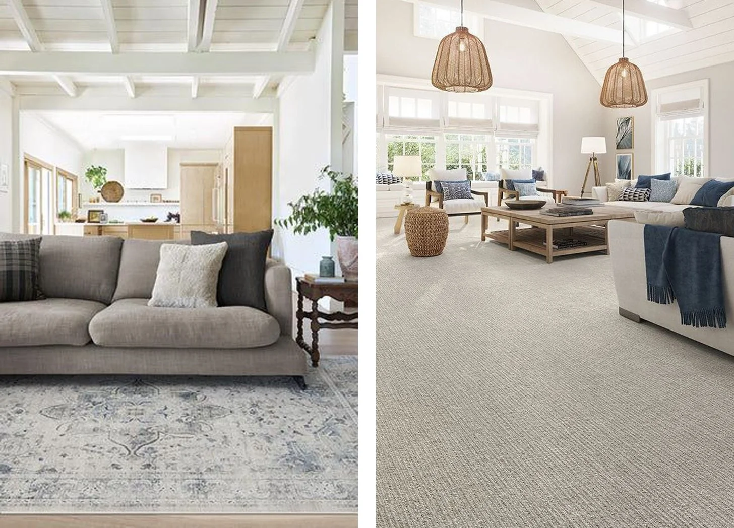 If your living room will be a high traffic area frequented by pets and children, think about having a hardwood or laminate floor, that is easy to maintain and clean. You can soften the look and anchor the space with a large machine washable rug. If you prefer the look and feel of carpet, wool is a good option, as its natural fibres make it hardwearing and resistant to marks from furniture.